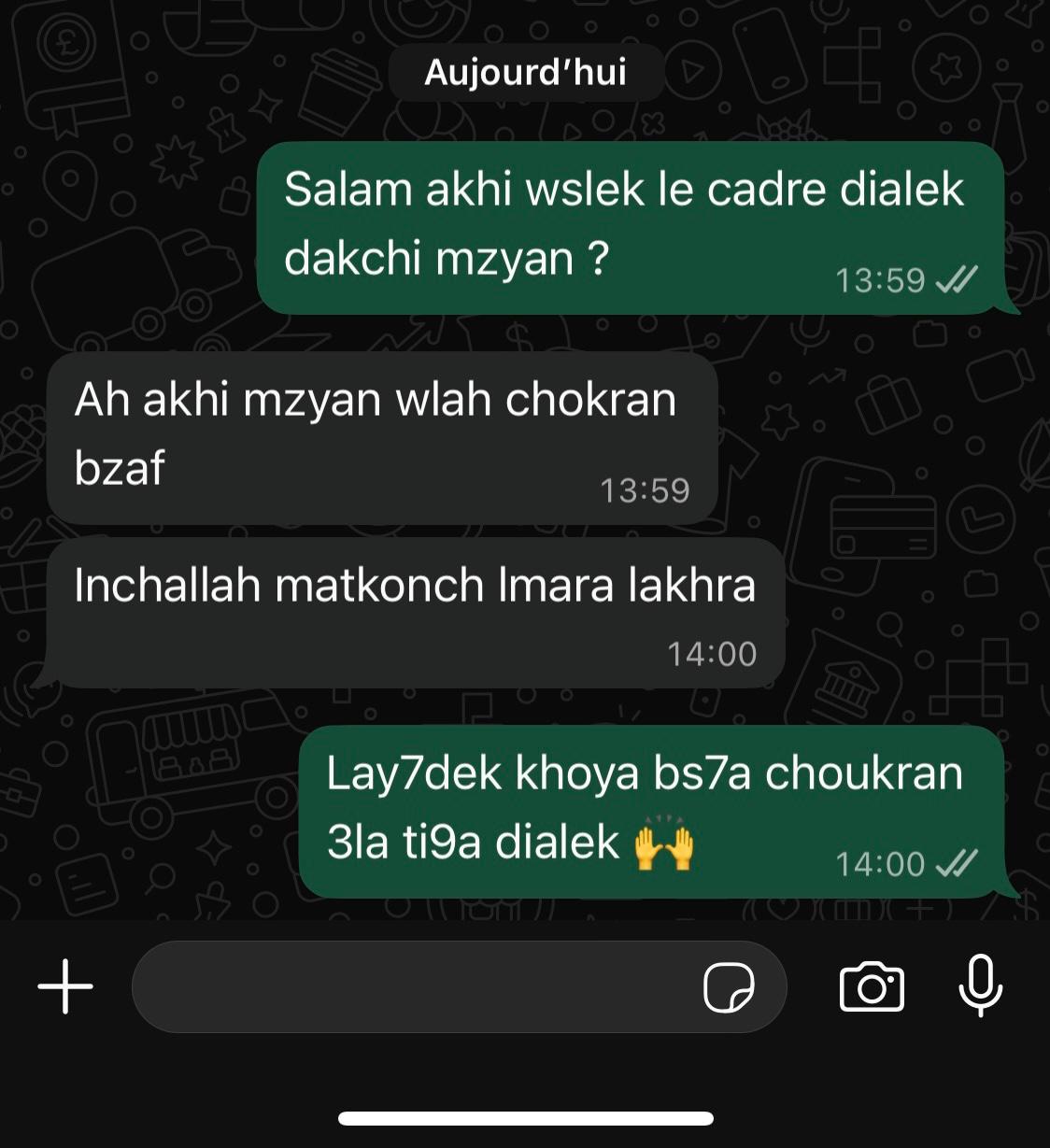 Tout les paiements se font à la livraison, ou en avance si à la demande du client ou commande supérieure à 500dh (avance minimum de 100dh)